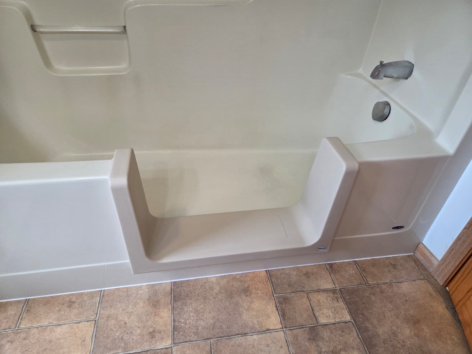 Instead of having to step over a tub wall, it is very easy to step into a space that is 7-8 inches high or lower.